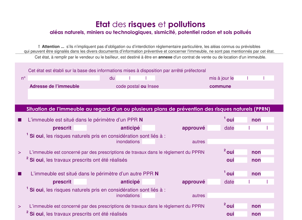 ÉTAT DES RISQUES ET POLLUTIONS